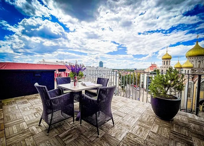 Luxury Apartments With Large Terrace In City Center Vilnius de 60 m² accueille les voyageurs au cœur même de Vilnius, situé à 20 minutes à pied du Marché Halė. Le Wi-Fi est fourni pour les activités d'affaires et de loisirs.